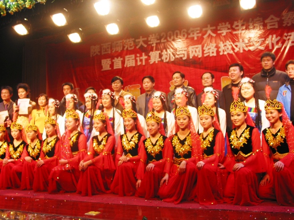 2006年12月26日,晚上7点,在雁塔校区积学堂我校隆重举行了“陕西师范大学2006年大学生综合素质大赛暨首届计算机与网络技术活动月颁奖晚会”。校党委副书记、副校长王涛教授、校学生处处长解勇国老师、我院党总副书记杜海斌老师以及各院系领导出席了本次活动,并应邀为获奖选手颁奖。