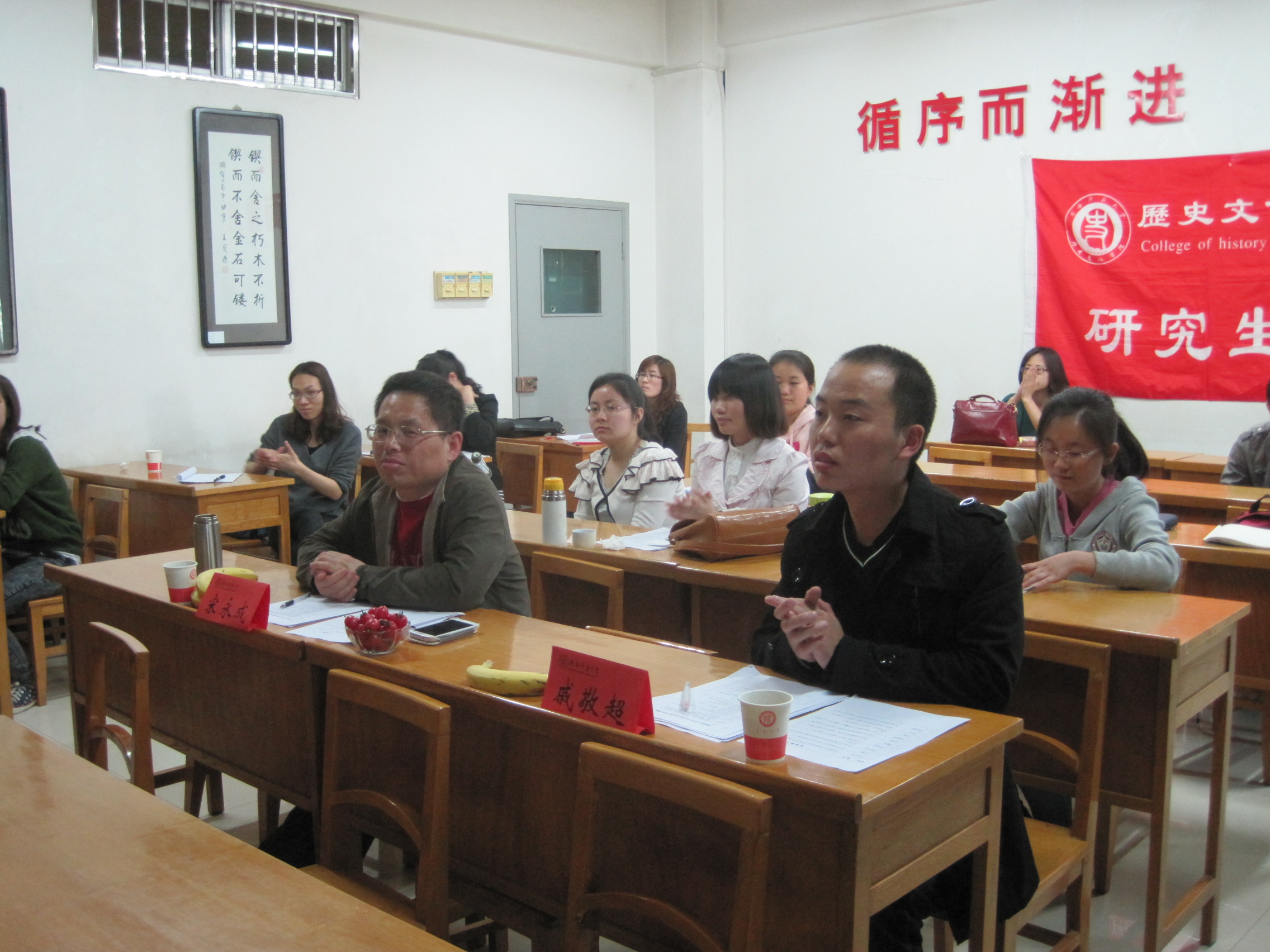3月27日下午,历史文化学院研究生七分钟说课比赛在文渊楼618教室举行。此次比赛我们有幸邀请到西北课改名校共同体秘书长、我院硕士生导师宋永成老师以及我院上一届研会实践部部长戚敬超学长担任评委。