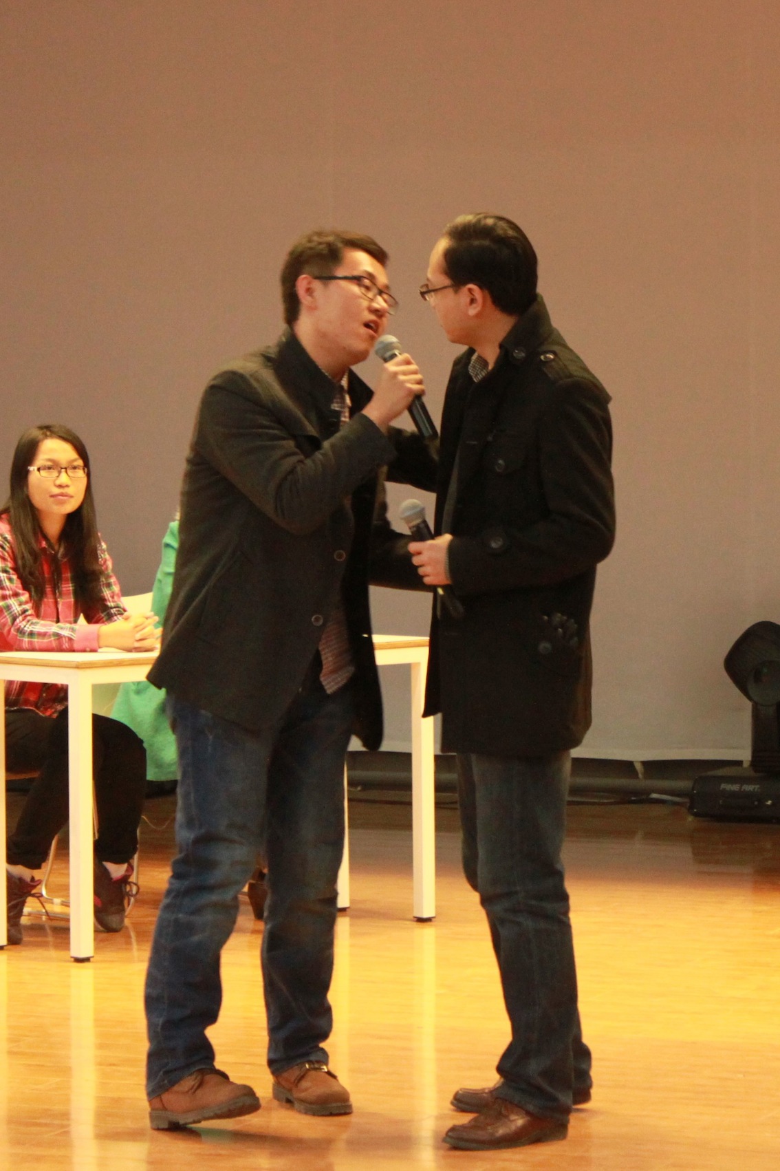 12月15日上午10时,我院2014年迎新晚会节目审核在新勇学生活动中心二层学生剧场顺利完成。我院党总支副书记杜海斌,团委书记柴永昌,辅导员洪海安、张志祥、刘洁婷老师参与本次审核。