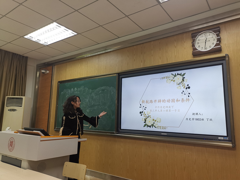 本次讲课比赛活动分为比赛,评委点评,颁奖三个环节。参赛选手须在8分钟内结合课件进行一个子目内容的讲授,然后回答老师针对授课内容的一个提问。在比赛过程中,我院学生以饱满的热情,展现了扎实的专业功底和良好的史学素养。