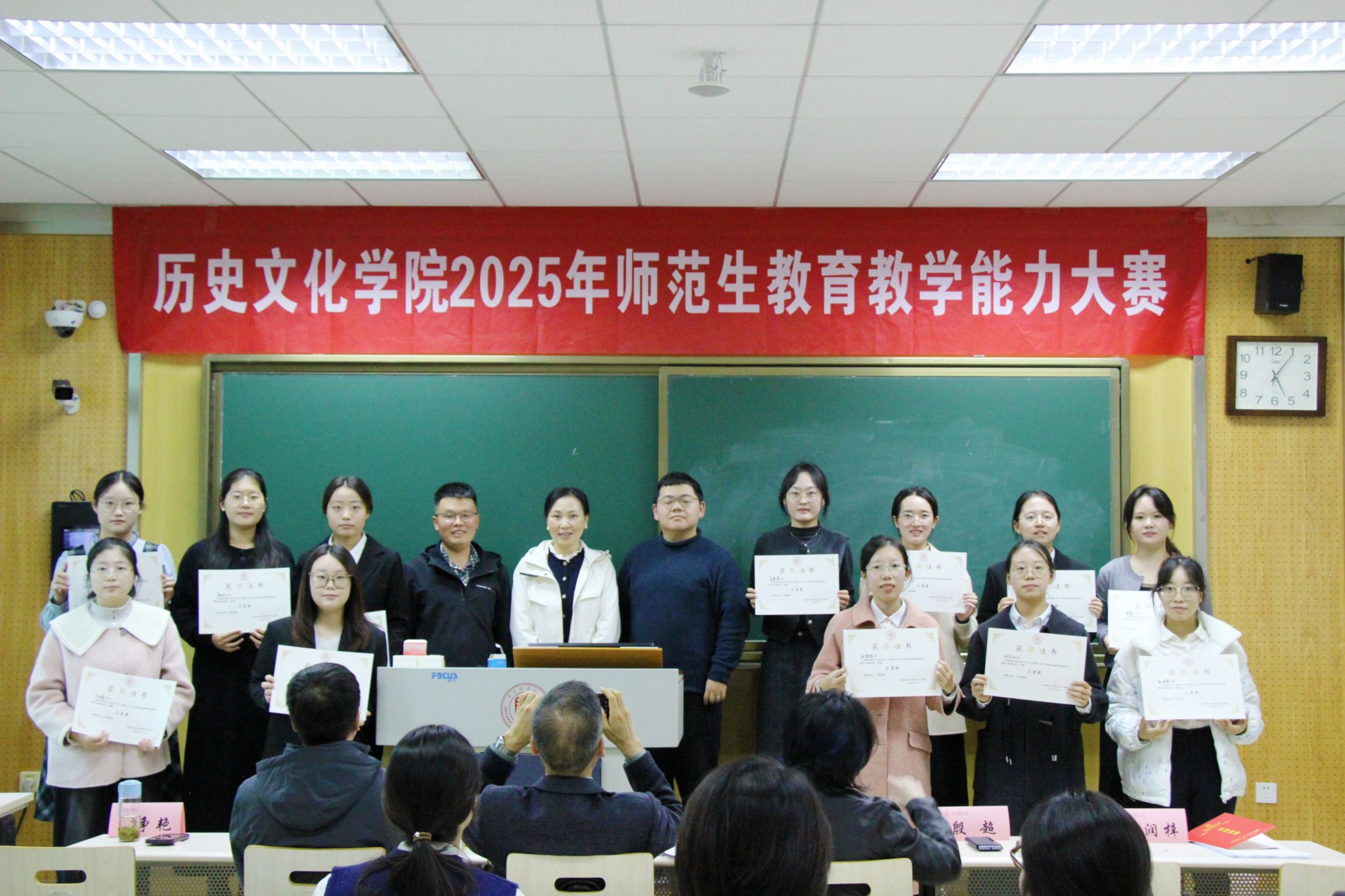 为进一步强化师范生综合素养,锻炼师范生实践技能,11月12日,历史文化学院在长安校区文渊楼举办了2025年师范生教育教学能力大赛。我院院友、西安交通大学附属中学副校长贺胜利,西安辅轮中学历史教师殷超,陕西师范大学附属中学历史教师卞润梓,学院徐赐成教授、蔡娜副教授、苏争艳副教授担任本次决赛评委。60余名学生代表现场观摩比赛。