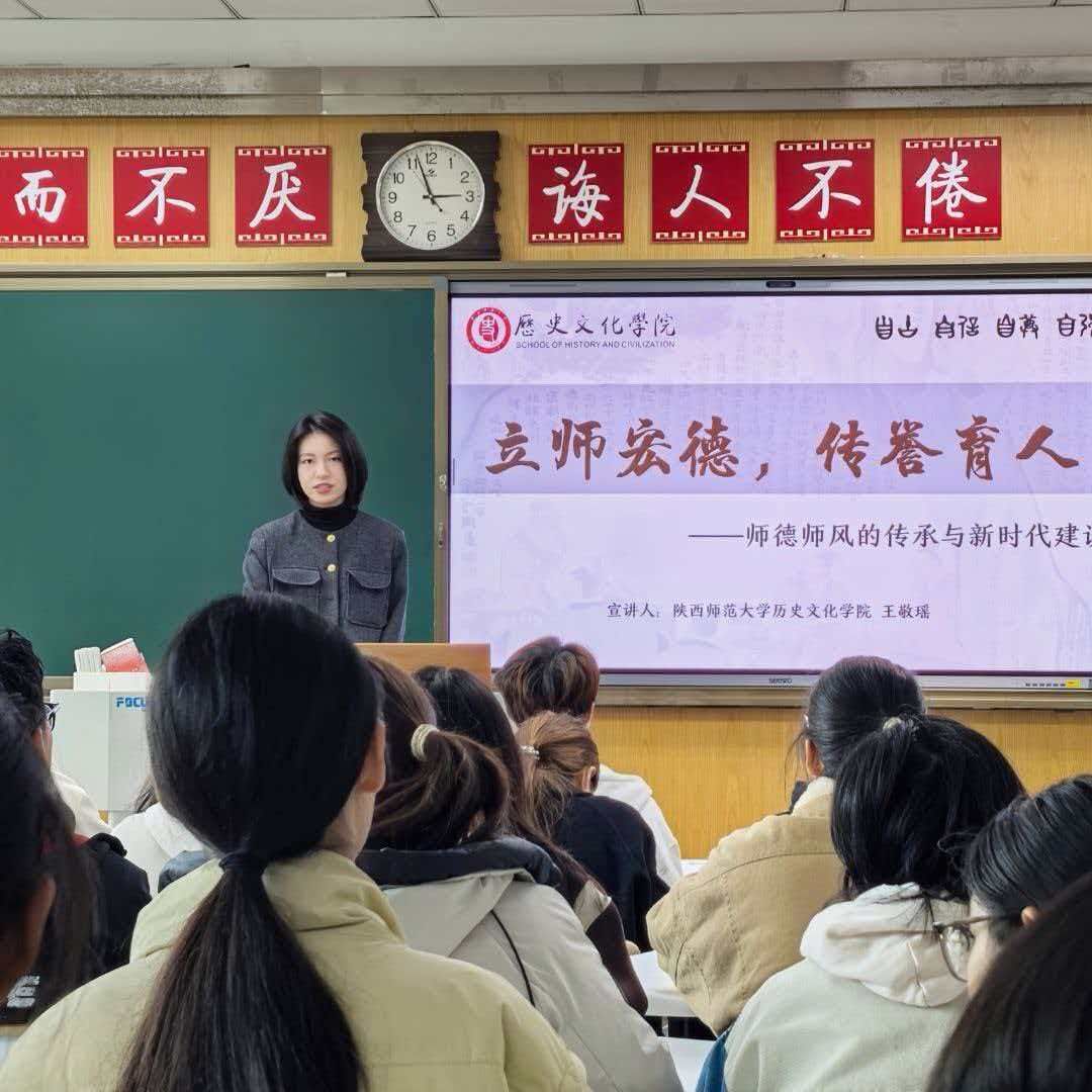 站在师大的沃土,紧紧拥抱”西部红烛,两代师表”的精神,“史原星火”理论宣讲团推出的“师德师风”主题宣讲活动结合本校独特的育人理念,为同学们带来更加深刻与丰富的聆听体验。教育不止是一个授人以渔的过程,更是在同学们心中种下种子。许多同学课后表示,对师德师风有了更深刻的认识,对老师这一职业肃然起敬。