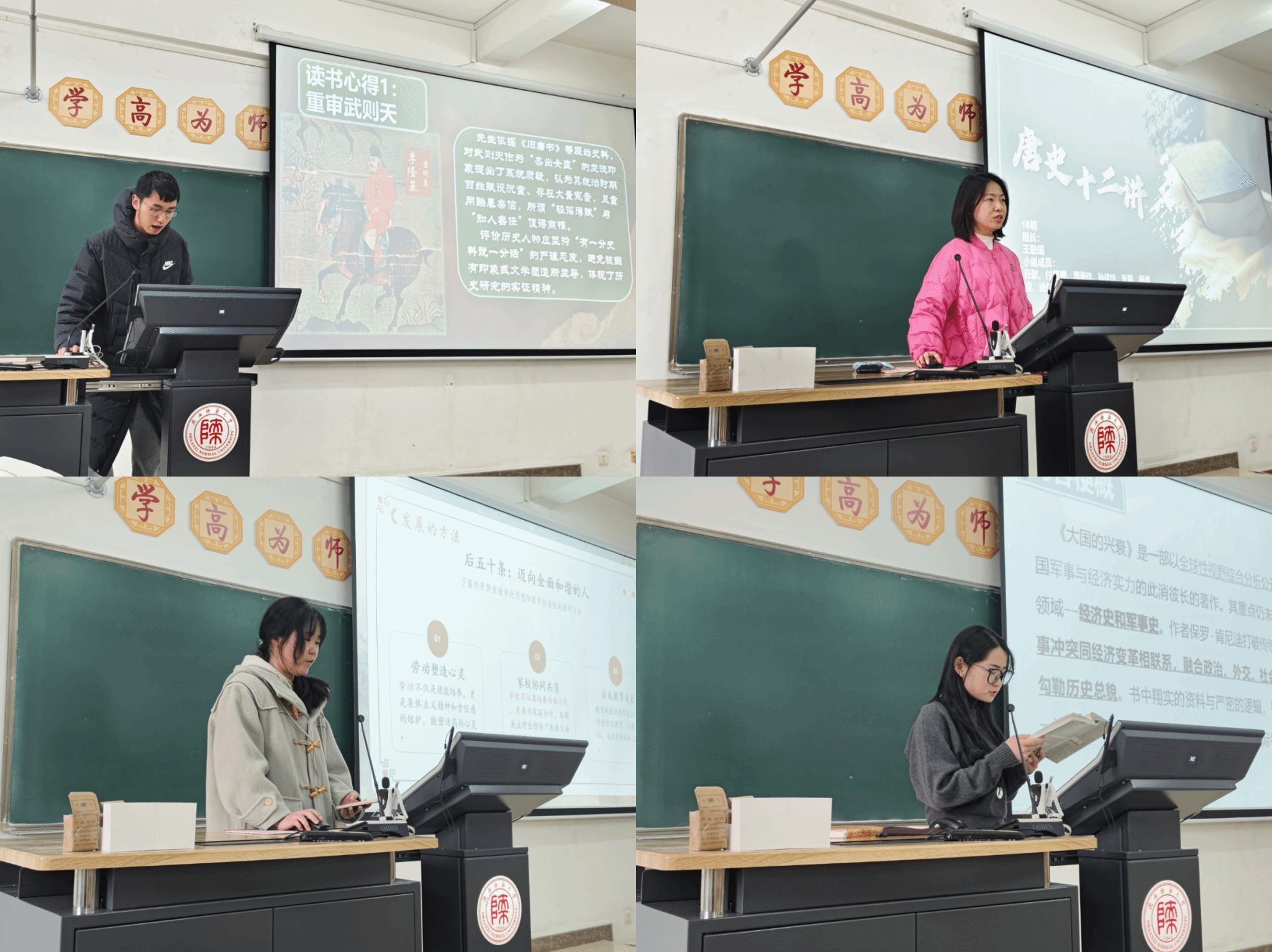读书分享环节,来自不同年级的21个小组围绕《东晋门阀政治》《大国的兴衰》《唐史十二讲》《给教师的一百条建议》等经典书目展开交流。各小组分享内容亮点纷呈,见解独特,他们聚焦历史教学,深入剖析书目,创新教学方法,从细微角度切入,实现“以小见大”的思维启发,推动了学科交融。在展示扎实专业基础的同时,实现思维的碰撞,为本次读书会增添了浓厚的学术氛围。