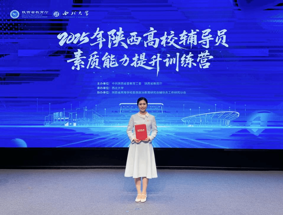 11月5日至7日,由陕西省委教育工委、省教育厅主办的2025年陕西高校辅导员素质能力提升训练营在西北大学长安校区举办。我院辅导员张迪从全省高校135名参训学员中脱颖而出,以小组总分第一的成绩荣获“业务标兵”称号。