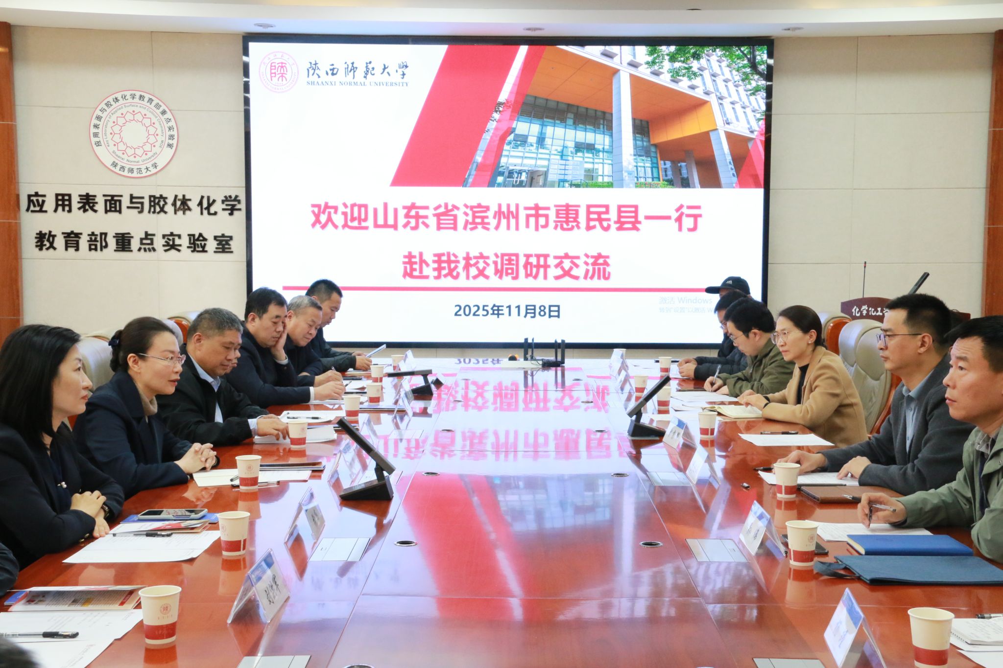 11月8日,山东省滨州市惠民县县委副书记、县长许健率队到访陕西师范大学,与历史文化学院和材料科学与工程学院领导班子、教师代表展开调研座谈。座谈会由历史文化学院院长李化成教授主持。